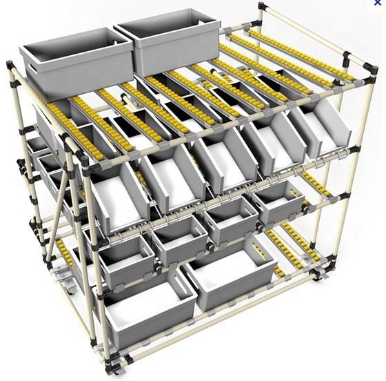 | Hervorheben | Lager-Regal-industrielle Rollen-Bahn,Industrielle Plastikrollen-Bahn-Fluss-Schiene,Stahlförderer-Rollen-Bahn |
