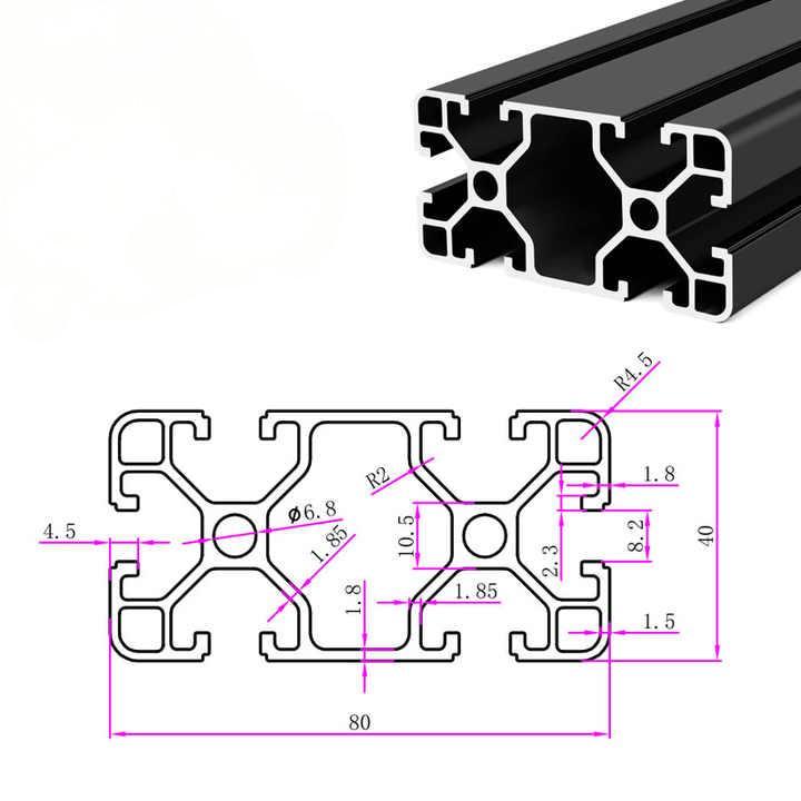 Hervorheben | 40*80 Aluminium-Strangpressprofil aus Aluminiumlegierung,T-Schlitz verdrängtes Aluminiumprofil,T-Schlitten Aluminium-Extrudiertes Profil |